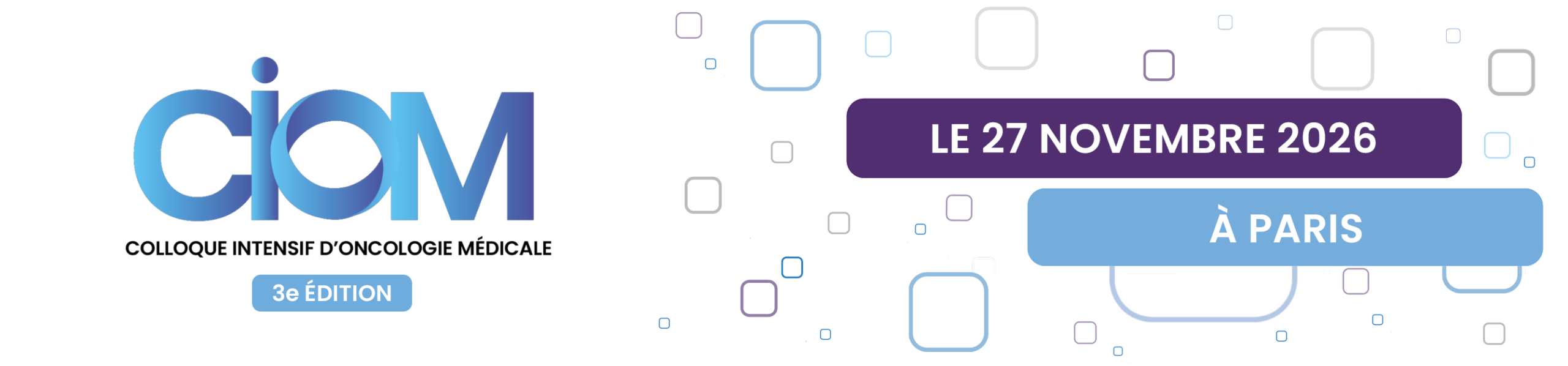 Nous sommes heureux de vous présenter la troisième édition du Colloque Intensif d’Oncologie Médicale (CIOM) le 27 novembre 2026 à Paris !